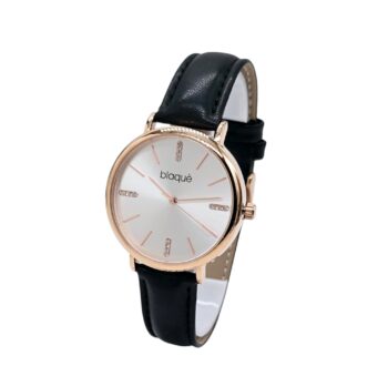 Reloj análogo con malla de cuero.