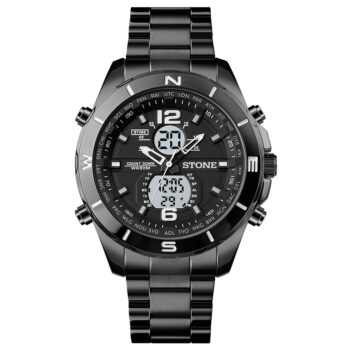 Reloj analógico/ digital con malla de metal, resistente al agua, con luz, alarma y cronómetro.