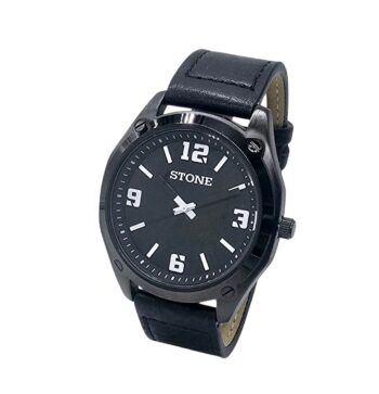 Reloj análogo con malla de cuero.