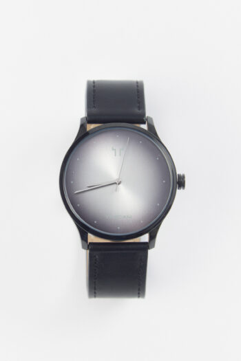 Reloj análogo con malla de cuero.